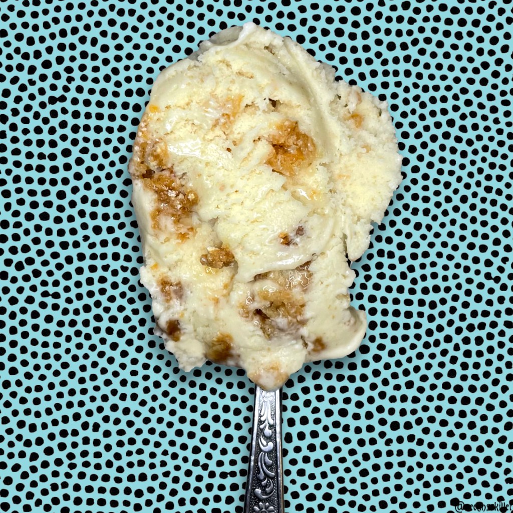 This new spin on Brian and Jackie’s original Oatmeal Lace creation replaces the cinnamon base with a doughnut-infused one, and it very well may be an upgrade. I LOVE cinnamon, and Nonna D OG was a staple of Ample Hills with a robust and fantastic spicy cinnamon foundation; but the unique palate and subtle flavors on display in this base are astounding. Both flavors are slight but I get more doughnut than maple, which I didn’t expect at all. I actually taste the fried cake doughnut flavor and can envision the greasiness fusing into the cream. The maple is secondary but still there, rounding out the doughnut aura for a base that’s just as delightfully tasty as it is texturally smooth and decadent.