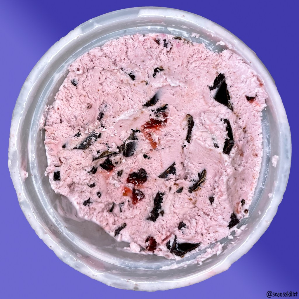 Yes, this ice cream, in recipe, is a carbon copy of Cherry Garcia, yet in execution is taken to a whole new level — I love this pint. The simplicity and derivative nature of this profile isn’t likely to turn heads, but its place within this pack is brilliant and oh-so-necessary. The base is perfectly sweet with a genuine tart cherry flavor and a surprising saltiness in the finish. It may or may not be from the use of cream cheese in the base but there’s a level of salt and richness I didn’t expect from a fruit ice cream and it’s fantastic.
