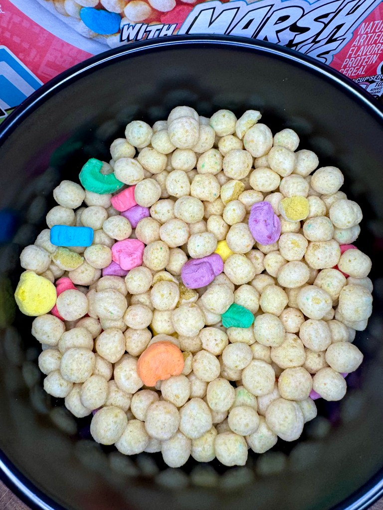 I don’t mind it, though, because there also isn’t a pronounced protein taste or any strong chemical-y aftertaste, either. The white Marshmallow balls are less flavorful but they’re served next to actual sugary marshmallows, which when eaten in tandem as intended, have a nice sweet vanilla flavor that’s mild but just potent enough to satisfy that breakfast cereal itch.