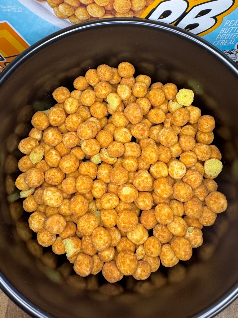 Both cereals are truly, and slightly surprisingly, delicious. The cereal balls, mostly comprised of milk protein concentrate, carry a gentler crunch than your typical Cap’n-style berry variety, but still have plenty of crumbly chomp to be more than satisfying. The element that stands out the most with these cereals compared to their actual sugar-laden protein-devoid counterparts, is that they are, not surprisingly, less sweet. The flavor is still very much there, especially the slightly salty and true peanut-y flavor on the PB, but it’s a bit less potently dense and more muted than on the actual sugary ones.