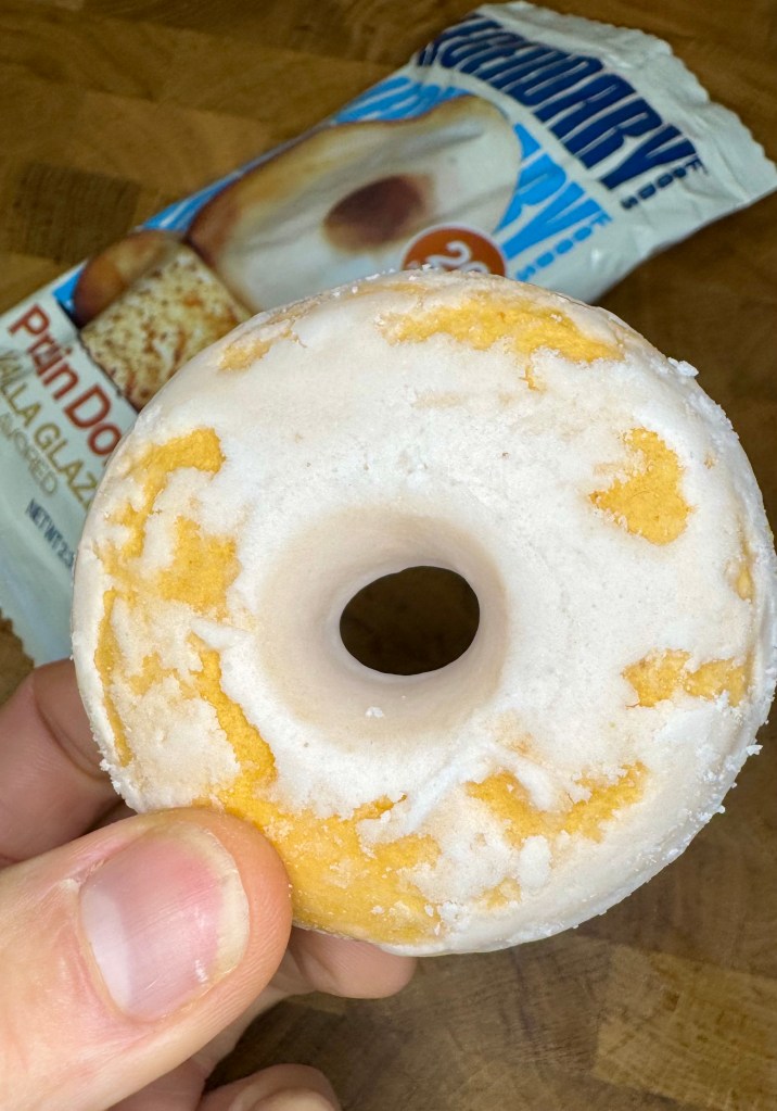 I wasn’t sure if this was going to be exactly like the Vanilla with some food coloring and sprinkles or if there would be more flavor, and it does, in fact, have more flavor. The pink icing carries a light strawberry that brings some extra sweetness and fun to the dense protein-filled doughnut. Unlike the vanilla, I actually thought this one came a bit more to life with 12 seconds in the microwave and I appreciated the extra sugary hit and softer texture the warmth brought out. Again, still solid at room temperature but a little zap makes this one a touch more special.