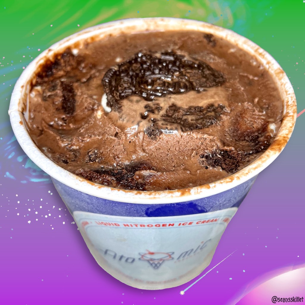 We all love a good Oreo, but the brownies in this pint are some of the best I’ve ever had. They are so ooey gooey and soft they feel and taste like they came straight from the pan, baked mere hours ago. The chocolate is a richer and more intensely flavored one than the base, kind of like fudge, with some vanilla notes and a hint of salt that poke through as well. Somehow both darker and sweeter, the massive chunks of brownie swimming in the chocolate base with the occasional crunch from an Oreo wafter is a chocolate lovers dream…and I am lucid. Sometimes brownies can be dry and cakey — not here. These mix-ins are a testament to the effectiveness of Atomic’s flash freezing, not only being made exceptionally fresh with top tier ingredients in person, but locking in that experience for someone on the other side of the state.
